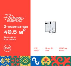 Продается двухкомнатная квартира 394 в новостройке Жилой район "Родные кварталы" по адресу Москва, ТиНАО, Новомосковский АО, Марушкинское С/П, жилой комплекс Родные Кварталы, 1.2, район Внуково, Новомосковский административный округ, Москва. Общая площадь квартиры - 40.50 кв. м., этаж 3 из 9, секция 8. Тип проекта, по которому построен дом - монолит, компания-застройщик - ООО "А101". Стоимость квартиры - 15153075 Р. Срок сдачи - 4 квартал 2026.
