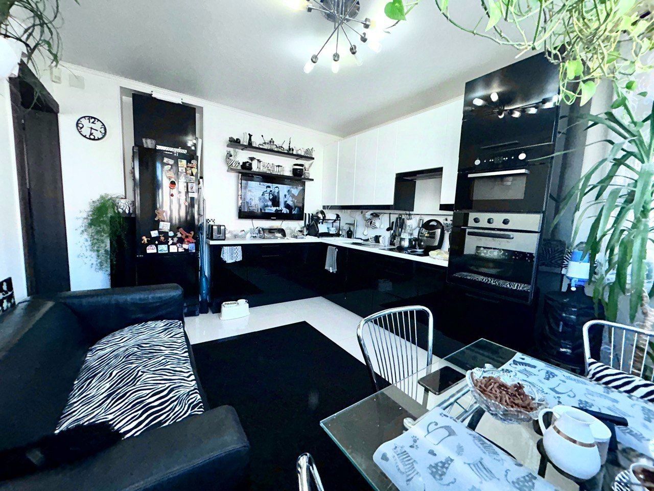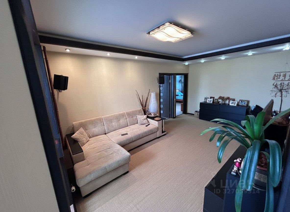 В квартире выполнен дизайнерский ремонт и увеличена жилая площадь за счет присоединения одного из коридоров к гостиной.