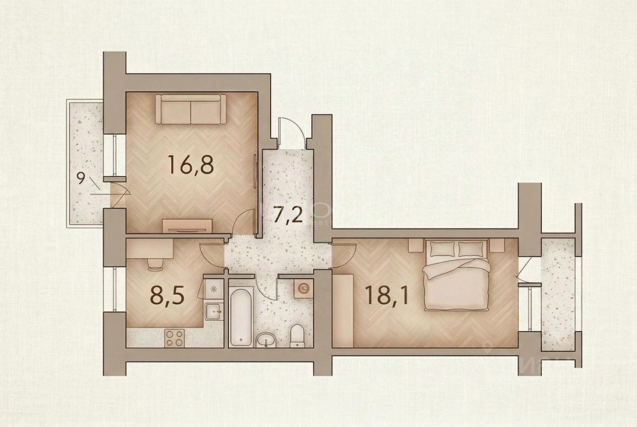 В квартире нет несущих стен, вы сможете реализовать любые дизайнерские решения.