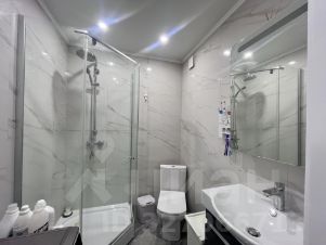 Натяжные матовые потолки в квартире, два санузла: взрослый и детский.