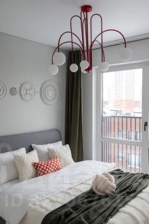 - кухонная зона с встроенной техникой, две изолированных комнаты, много естественного света