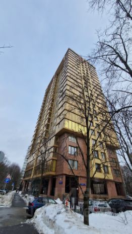 Солидная и красивая входная группа с витражным остеклением и отделкой камнем и декоративным деревом, респектабельные лифты, эстетичные поэтажные холлы с отделкой мрамором. Дом облицован клинкером бежевого теплого песочного оттенка и финскими фибропанелями золотистого цвета, витражи остеклены тонированным стеклом также золотистого оттенка, практически `золотой дом`. Всего 80 квартир приличной площади (4 квартиры на этаж), 3 скоростных лифта Отис премиальной серии. Постоянно на входном ресепшене находятся чоповцы 2 человека, строгий контроль входящих - или жильцы или только с их официального разрешения или команды, видеонаблюдение - везде, на каждом этаже, лифтах и т.д. Гостевая парковка, огороженная обустроенная аккуратная придомовая территория с отдельной калиткой для выхода во двор на магнитном ключе. Прям вплотную к дому парк и сквер, детская площадка, футбольная, волейбольная и баскетбольные площадки.