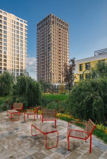 Современный жилой квартал бизнес-класса с закрытыми дворами без машин, благоустроенной территорией, детскими и спортивными площадками. На первых этажах — коммерческая инфраструктура: кафе, магазины, сервисы.