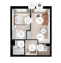 Общая площадь 36,2 кв.м, 19 этаж. Срок сдачи конец 2027 года.