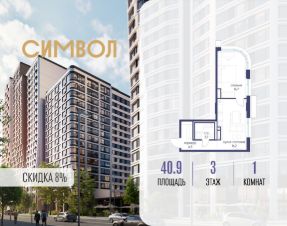Продается 1-комнатная квартира от застройщика: общая площадь 40.90 м², жилая 14.70 м², кухня 16.20 м², 3-й этаж, жилой квартал "Гордость", корпус 40 (секция 1). Срок сдачи: 2 квартал 2029 года.