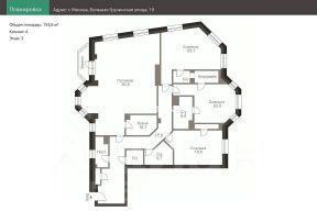Функциональная планировка включает в себя кухню, гостиную со столовой зоной, 3 спальни, гардеробную, 3 санузла, балкон.