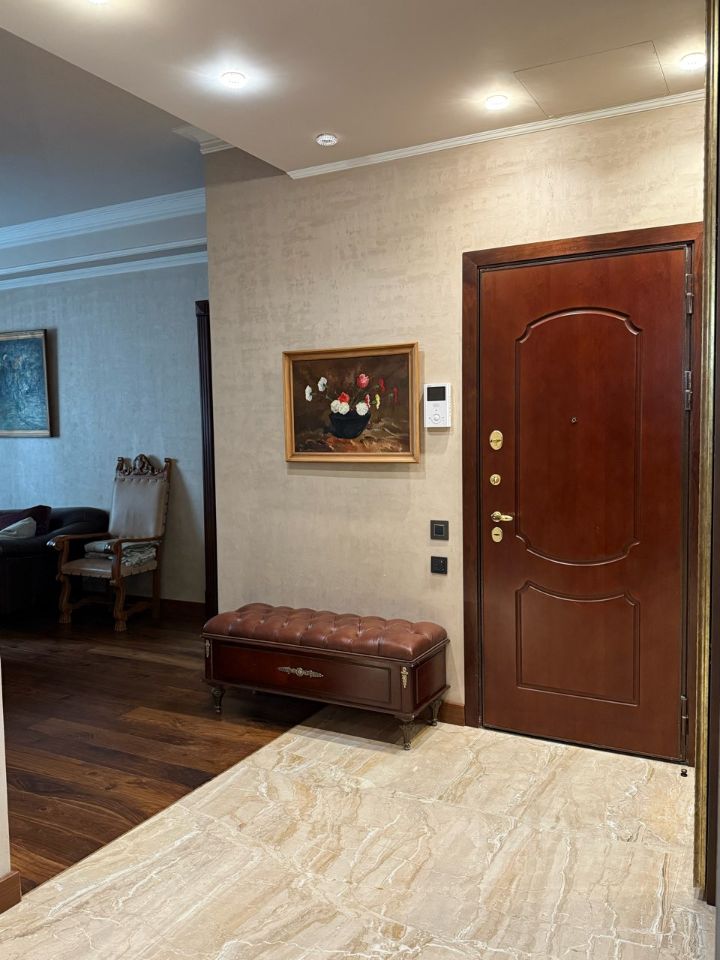 В квартире был сделан ремонт в 2014 году. 2 спальни, 2 совмещенных санузла, кухня отделенная выдвижной стекляной дверью от гостинной и рабочий кабинет.