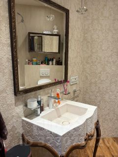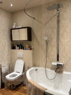 Вся техника качественная - neff, miele, liebherr, sony. Сантехника villeroy & boch, gessi. Есть встроенные духовка, микроволновая печь и кофемашина. Холодильник оборудован винным шкафом.