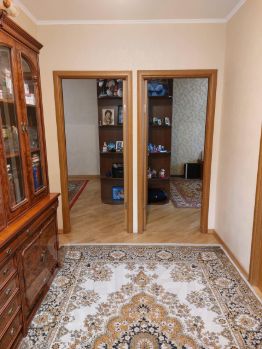 Остаётся встроенный кухонный гарнитур с бытовой техникой ( очистка для воды), в зале остаётся кондиционер, в коридоре встроенный шкаф-купе + прихожая, в обоих спальнях остаются 3-х створчатые шкафы для одежды. По желанию покупателя можем оставить на кухни диван.