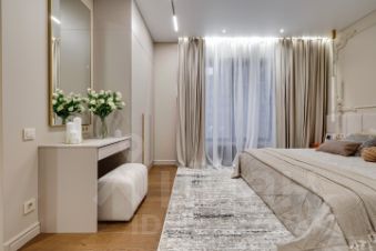 Квартира с новой мебелью, кухонным гарнитуром и техникой. Планировка: кухня-гостиная, три изолированные спальни, два санузла. Высота потолков 3 метра.