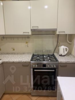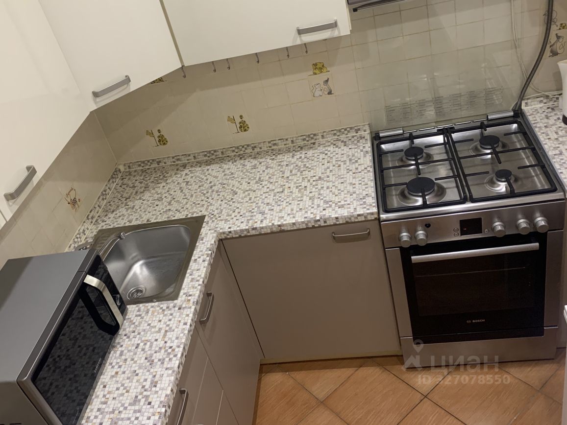 • Мебель и техника (входит в комплект продажи): кухонный гарнитур с рабочей поверхностью, газовая плита с духовкой, встроенная мойка, холодильник, электрочайник, небольшой обеденный стол со стульями; в комнате — кровать, комод, тумбы; большой шкаф-купе с зеркальными дверцами.
