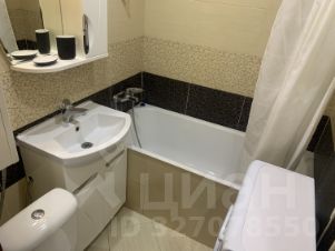 • Санузел: совмещён (ванна, умывальник, унитаз), плитка в нейтральной гамме, зеркало и полки.