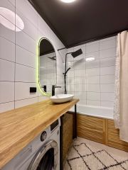Выполнен качественный евроремонт. Почти вся мебель и техника остаются (забирают только 2 телевизора, сушильную машину и компьютерный стол) — можно заехать и жить без дополнительных вложений.