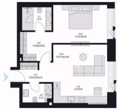 Площадь — 67,3 м². Продуманная планировка и элегантная отделка в стиле неоклассика создают атмосферу современной роскоши и уюта.Планировочное решение: