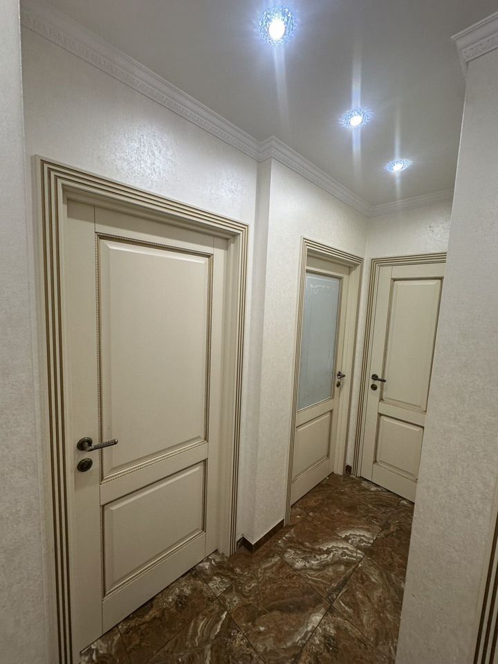 Вся плитка Испания и Италия, 2-х уровненный потолок, карнизы Orac Decor, полы паркет из массива Дуба, доска, шумоизоляция пола, Двери Дверной Лидер, все люстры Bohemia Crystal.