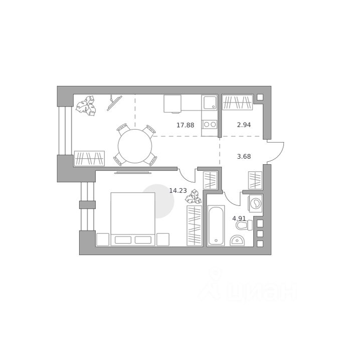 Продаётся 1-комнатная квартира 605, площадью 43,64 м², на 9 этаже в ЖК "MYPRIORITY Павелецкая" корпус 2. Стоимость — от 32875663 руб. Квартира без отделки, планировка односторонняя, окна на улицу.