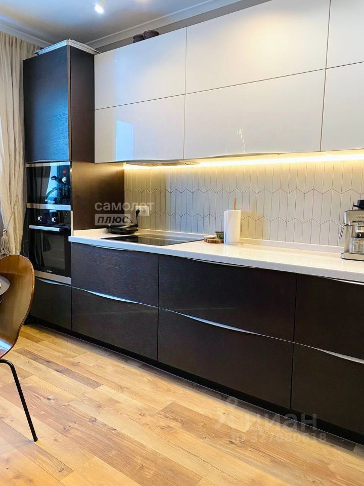 Выполнен качественный дизайнерский ремонт (стены и потолки окрашены, натяжные потолки не используются). Квартира оснащена встроенной техникой Bosch (плита, духовка, микроволновая печь, посудомоечная машина), стиральной и сушильной машинами AEG.