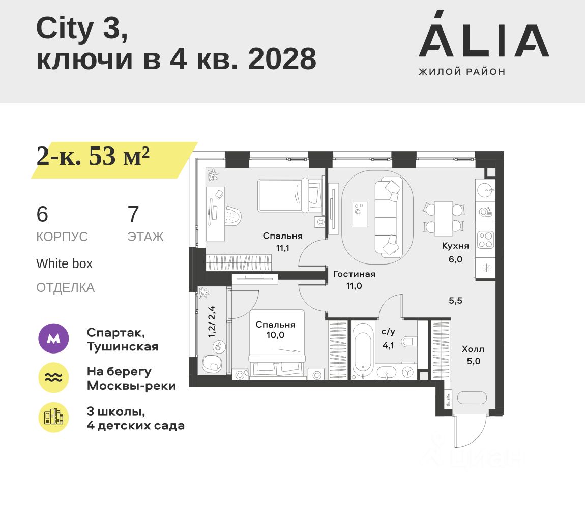 Алиа — это район разностороннего развития, спроектированный по принципу WORK.LIVE.PLAY.LEARN. Это "15-минутный город", где вся необходимая для комфортной жизни инфраструктура — на расстоянии приятной прогулки.