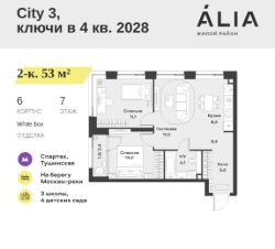 Продаётся 2-комнатная квартира 53 м². В жилом районе Алиа на 7-м этаже 28-этажного дома.