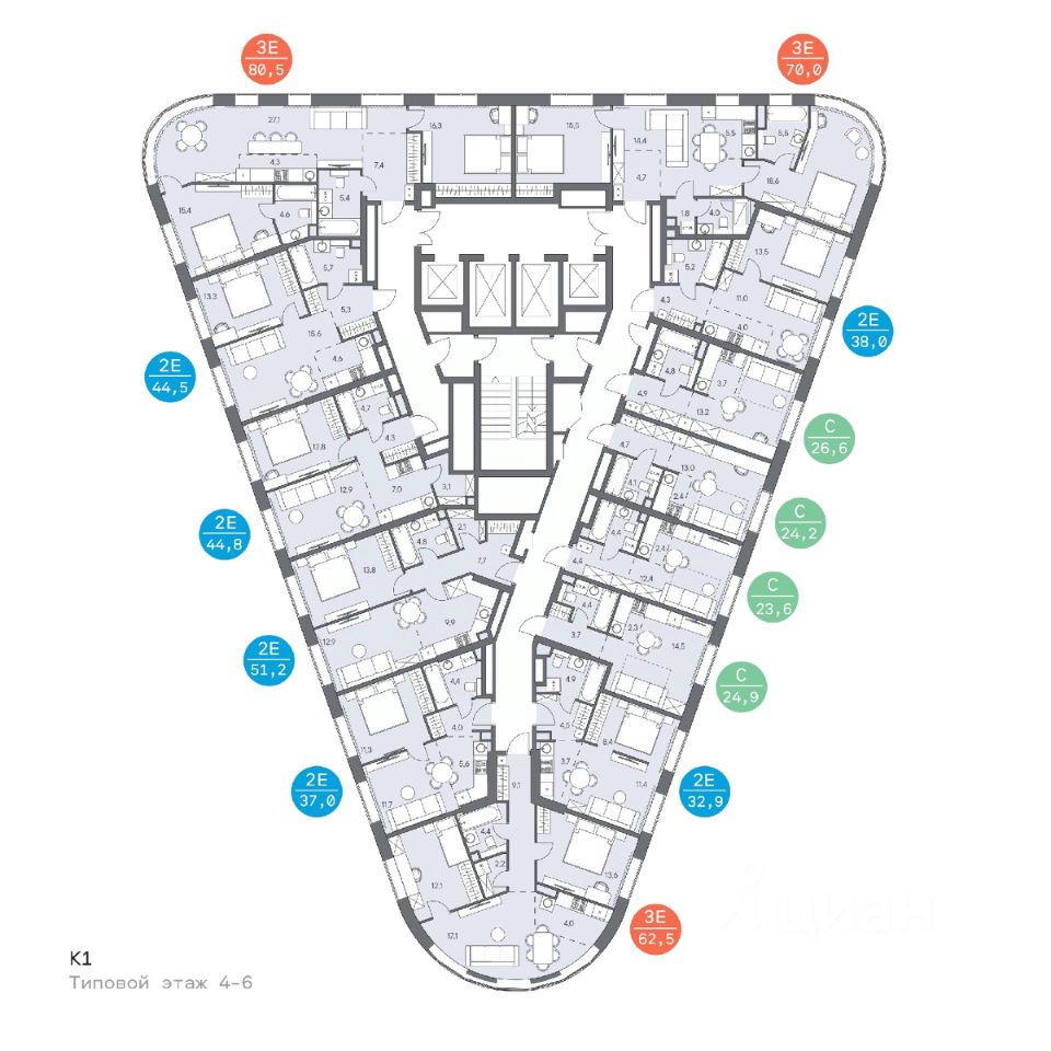 В жилом комплексе широкий выбор вариантов жилья — от компактных студий до просторных 5-комнатных квартир. Помимо комфортных европланировок, представлены уникальные форматы: квартиры с панорамными гостиными, квартиры с террасами на 2 этаже.