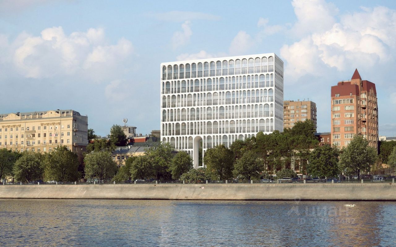 Архитектура сочетает в себе элементы римского Колизея, венецианских палаццо и московских двориков. Из окон открывается вид на набережные Москвы-реки.