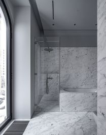 В ванной комнате отделка из натурального мрамора, санфаянс- Villeroy & Boch (Германия)