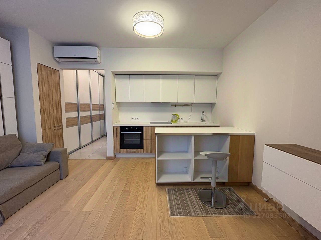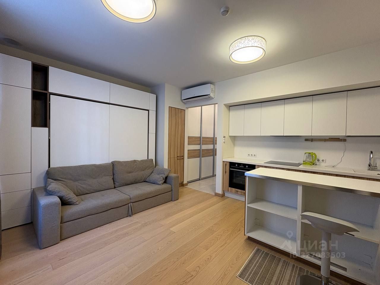- Полная комплектация — техника (европейские бренды), мебель-трансформер, вместительный шкаф-купе, кондиционер, телевизор