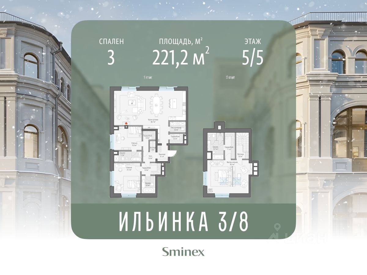 "Ильинка 3/8" - cамая близкая к Кремлю и Красной площади коллекция клубных особняков. Дом расположен на месте Тёплых торговых рядов: 160 м до Красной площади, 300 м до Кремля, 500 м до Администрации Президента. Ранее в этой исторической локации проживали представители царских сословий. По соседству находятся одна из старейших в городе Богоявленская церковь и Биржевая площадь. Расположение дарит жителям комфорт и разнообразие: пересечение Ильинки и тихого Богоявленского переулка с минимальным трафиком автомобилей, близость Никольской улицы с её насыщенной инфраструктурой - от топовых бутиков до ресторанов Michelin. "Ильинка 3/8" - это 7 эксклюзивных и роскошных особняков: 3 деликатно реконструированных исторических и 4 новых. В них представлена инфраструктура только для своих: красивый двор-сад с парадной и торжественной входной группой; лобби-бар для встреч, где можно подождать домочадцев, выпить чашечку кофе или взять её с собой; бесплатный фитнес по стандарту инфраструктуры для здорового образа жизни FIT LAB, общественная гостиная по стандарту FRIENDS LAB для знакомства и совместного времяпрепровождения соседей в доме. В клубных особняках представлены самые полные и лучшие в своём классе системы комфорта. О жителях и доме заботится Служба комфорта Smineх, которая предлагает сервис уровня 5-звёздочных отелей и сохраняет изначальный облик и концепцию дома. Девелопер проекта - Sminex, который специализируется на создании комфортной и престижной среды для жизни и работы.
