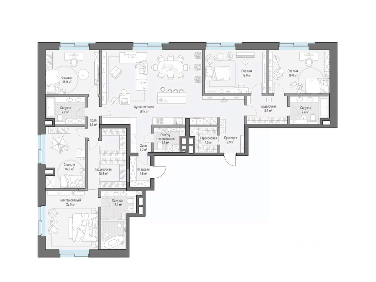 Площадь кухни56,5 м²