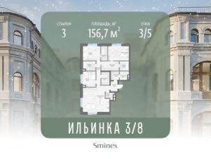 "Ильинка 3/8" - cамая близкая к Кремлю и Красной площади коллекция клубных особняков. Дом расположен на месте Тёплых торговых рядов: 160 м до Красной площади, 300 м до Кремля, 500 м до Администрации Президента. Ранее в этой исторической локации проживали представители царских сословий. По соседству находятся одна из старейших в городе Богоявленская церковь и Биржевая площадь. Расположение дарит жителям комфорт и разнообразие: пересечение Ильинки и тихого Богоявленского переулка с минимальным трафиком автомобилей, близость Никольской улицы с её насыщенной инфраструктурой - от топовых бутиков до ресторанов Michelin. "Ильинка 3/8" - это 7 эксклюзивных и роскошных особняков: 3 деликатно реконструированных исторических и 4 новых. В них представлена инфраструктура только для своих: красивый двор-сад с парадной и торжественной входной группой; лобби-бар для встреч, где можно подождать домочадцев, выпить чашечку кофе или взять её с собой; бесплатный фитнес по стандарту инфраструктуры для здорового образа жизни FIT LAB, общественная гостиная по стандарту FRIENDS LAB для знакомства и совместного времяпрепровождения соседей в доме. В клубных особняках представлены самые полные и лучшие в своём классе системы комфорта. О жителях и доме заботится Служба комфорта Smineх, которая предлагает сервис уровня 5-звёздочных отелей и сохраняет изначальный облик и концепцию дома. Девелопер проекта - Sminex, который специализируется на создании комфортной и престижной среды для жизни и работы.