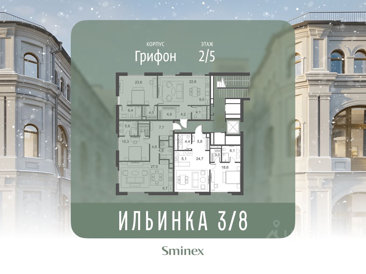 "Ильинка 3/8" - cамая близкая к Кремлю и Красной площади коллекция клубных особняков. Дом расположен на месте Тёплых торговых рядов: 160 м до Красной площади, 300 м до Кремля, 500 м до Администрации Президента. Ранее в этой исторической локации проживали представители царских сословий. По соседству находятся одна из старейших в городе Богоявленская церковь и Биржевая площадь. Расположение дарит жителям комфорт и разнообразие: пересечение Ильинки и тихого Богоявленского переулка с минимальным трафиком автомобилей, близость Никольской улицы с её насыщенной инфраструктурой - от топовых бутиков до ресторанов Michelin. "Ильинка 3/8" - это 7 эксклюзивных и роскошных особняков: 3 деликатно реконструированных исторических и 4 новых. В них представлена инфраструктура только для своих: красивый двор-сад с парадной и торжественной входной группой; лобби-бар для встреч, где можно подождать домочадцев, выпить чашечку кофе или взять её с собой; бесплатный фитнес по стандарту инфраструктуры для здорового образа жизни FIT LAB, общественная гостиная по стандарту FRIENDS LAB для знакомства и совместного времяпрепровождения соседей в доме. В клубных особняках представлены самые полные и лучшие в своём классе системы комфорта. О жителях и доме заботится Служба комфорта Smineх, которая предлагает сервис уровня 5-звёздочных отелей и сохраняет изначальный облик и концепцию дома. Девелопер проекта - Sminex, который специализируется на создании комфортной и престижной среды для жизни и работы.