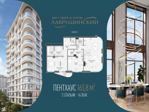 Роскошный пентхаус площадью 164 м² с террасой и дровяным камином на 14 этаже восточного корпуса дома "Лаврушинский".