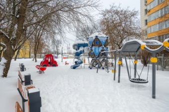 благоустроенный двор с детской и спортивной площадками;