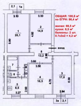 В собственности у молодой, благополучной семьи, включая несовершеннолетнего ребёнка по ДКП с 2012 года. Все Собственники будут на сделке. Без перепланировок и обременений. Альтернатива подобрана. Подойдёт под ипотеку любого банка. Аванс примем на 1 месяц, всё решим и подготовим оперативно. В объявлении указан метраж 100,6 кв.м с учётом полного размера 2-х балконов. По ЕГРН - 96,4 кв.м.