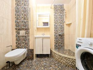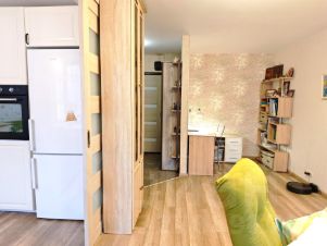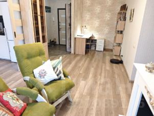 сантехника — профессиональный монтаж и комплектующие, хорошие окна с мягким закрыванием и защитой от бесконтрольного доступа. Просторная лоджия с ремонтом, панорамным остеклением. Выход из спальни и из гостиной для утреннего кофе или зимних закатов. Отлично спланированная кухня, встроенная техника -готовить и завтракать здесь одно удовольствие. Гостиная центр квартиры, для сбора всех домашних у биокамина- живая атмосфера уюта без хлопот.