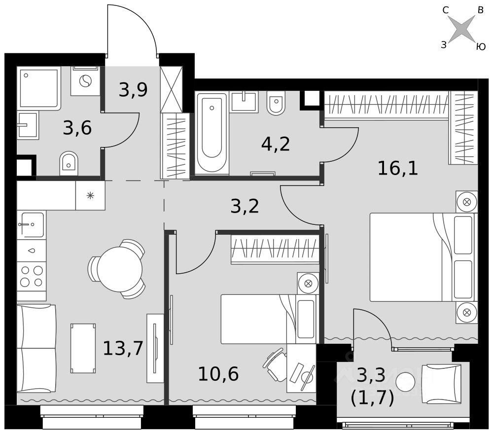 - Мастер-зона с санузлом и гардеробной. Всё для вашего комфорта и удобства, включая личный санузел и гардероб.