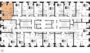 Продаётся 2-к квартира номер 472 общей площадью 44.8 кв.м. на 5-м этаже 32 этажного здания. Без отделки.