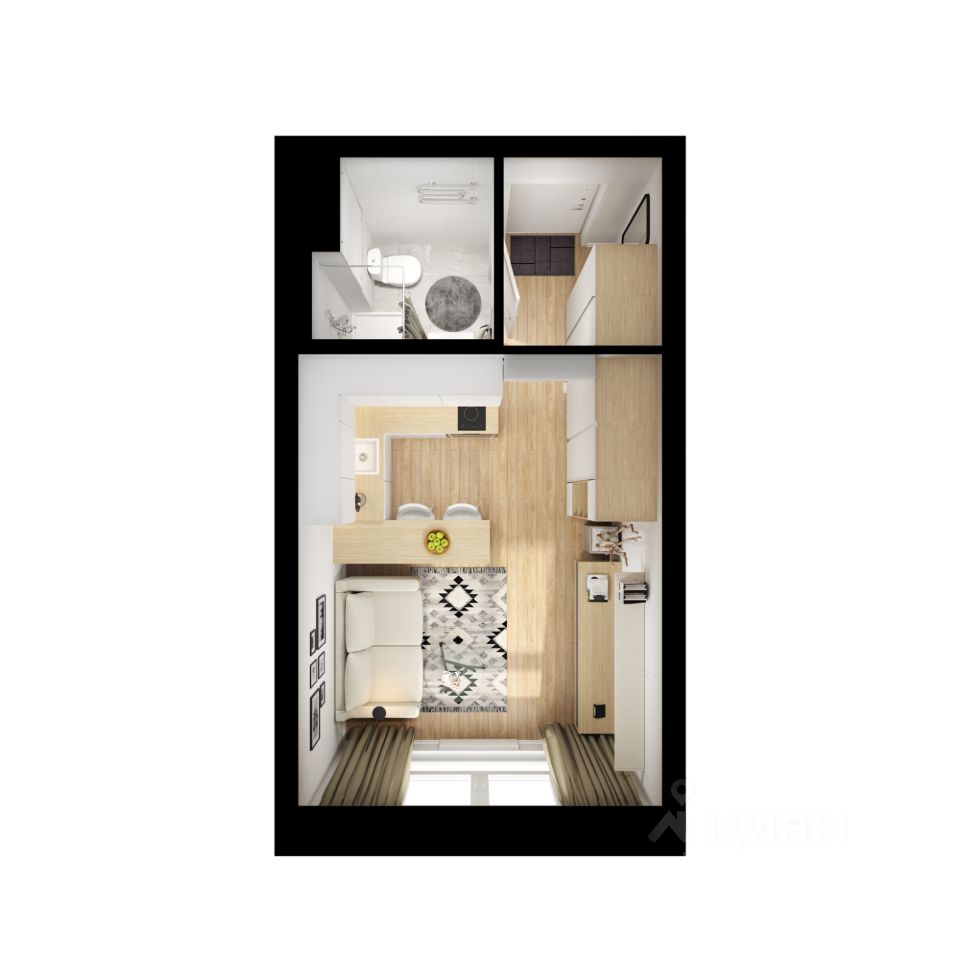Продаётся квартира-студия площадью 19,7 кв.м на 23 этаже 25 этажного дома (Корпус 12, Секция 1) проекта ПИК Люблинский парк. Светлый просторный подъезд на уровне земли, функциональная планировка, большие окна, c отделкой.