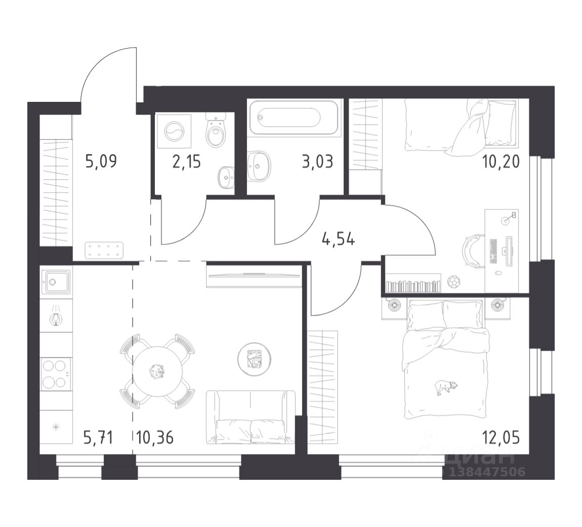 Строим кварталы для жизни с заботой о будущем. Предлагается 2-комнатная квартира комфорт-класса площадью 53,13 кв.м в корпусе 35 на 6-м этаже, в жилом комплексе "Новое Внуково".
