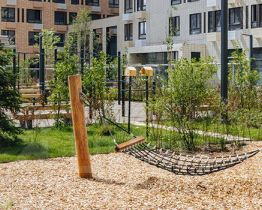 В проекте жилые дома, 2 детских сада на 150 и 235 мест, школа на 1100 мест и подземные паркинги на 525 машиномест. В зелёных дворах-парках будут места для отдыха, современные детские и спортивные площадки. На первых этажах откроются магазины, кафе и другие сервисы — за кофе и свежим хлебом к завтраку можно будет просто спуститься на лифте.