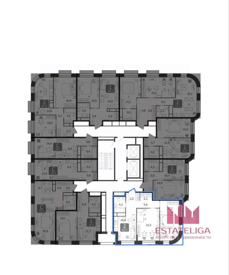 Id 60939. Предлагаем вашему вниманию просторную и уютную двухкомнатную квартиру общей площадью 62,4 квадратных метра, расположенную в новом жилом комплексе "Шагал". Жилой комплекс находится в живописном районе, окруженном зелеными зонами отдыха, создающими приятную атмосферу для прогулок и занятий спортом на свежем воздухе.