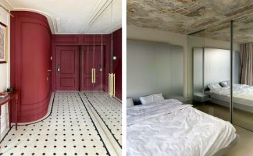 Спальня выполнена в более приватной и спокойной эстетике, с интегрированной гардеробной и продуманными системами хранения.