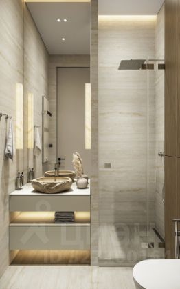 Качественный керамогранит высотой 3 метра в двух санузлах: пол и стены до потолка