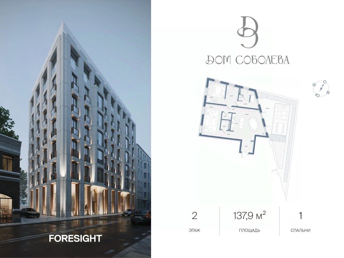 Продаётся 1-комнатная квартира в строящемся доме (Корпус 2), срок сдачи: II-кв. 2028, общей площадью 137.90 кв.м., на 2 этаже. "Дом Соболева" - это камерный жилой комплекс класса deluxe, расположенный на тихой и уютной улице Машкова в самом сердце Москвы. Проект создавался с особой тщательностью, чтобы предоставить своим жителям уникальное пространство для жизни, в котором сочетаются эстетика архитектурного наследия и современные стандарты комфорта. Разработанный архитектурным бюро NOWADAYS, Дом воплощает современное прочтение стиля модерн, изысканно вписанного в историческую ткань района.