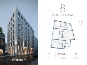 Продаётся 2-комнатная квартира в строящемся доме (Корпус 2), срок сдачи: II-кв. 2028, общей площадью 153.54 кв.м., на 7 этаже. "Дом Соболева" - это камерный жилой комплекс класса deluxe, расположенный на тихой и уютной улице Машкова в самом сердце Москвы. Проект создавался с особой тщательностью, чтобы предоставить своим жителям уникальное пространство для жизни, в котором сочетаются эстетика архитектурного наследия и современные стандарты комфорта. Разработанный архитектурным бюро NOWADAYS, Дом воплощает современное прочтение стиля модерн, изысканно вписанного в историческую ткань района.
