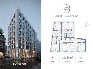 Продаётся 4-комнатная квартира в строящемся доме (Корпус 1), срок сдачи: II-кв. 2028, общей площадью 201.34 кв.м., на 7 этаже. "Дом Соболева" - это камерный жилой комплекс класса deluxe, расположенный на тихой и уютной улице Машкова в самом сердце Москвы. Проект создавался с особой тщательностью, чтобы предоставить своим жителям уникальное пространство для жизни, в котором сочетаются эстетика архитектурного наследия и современные стандарты комфорта. Разработанный архитектурным бюро NOWADAYS, Дом воплощает современное прочтение стиля модерн, изысканно вписанного в историческую ткань района.