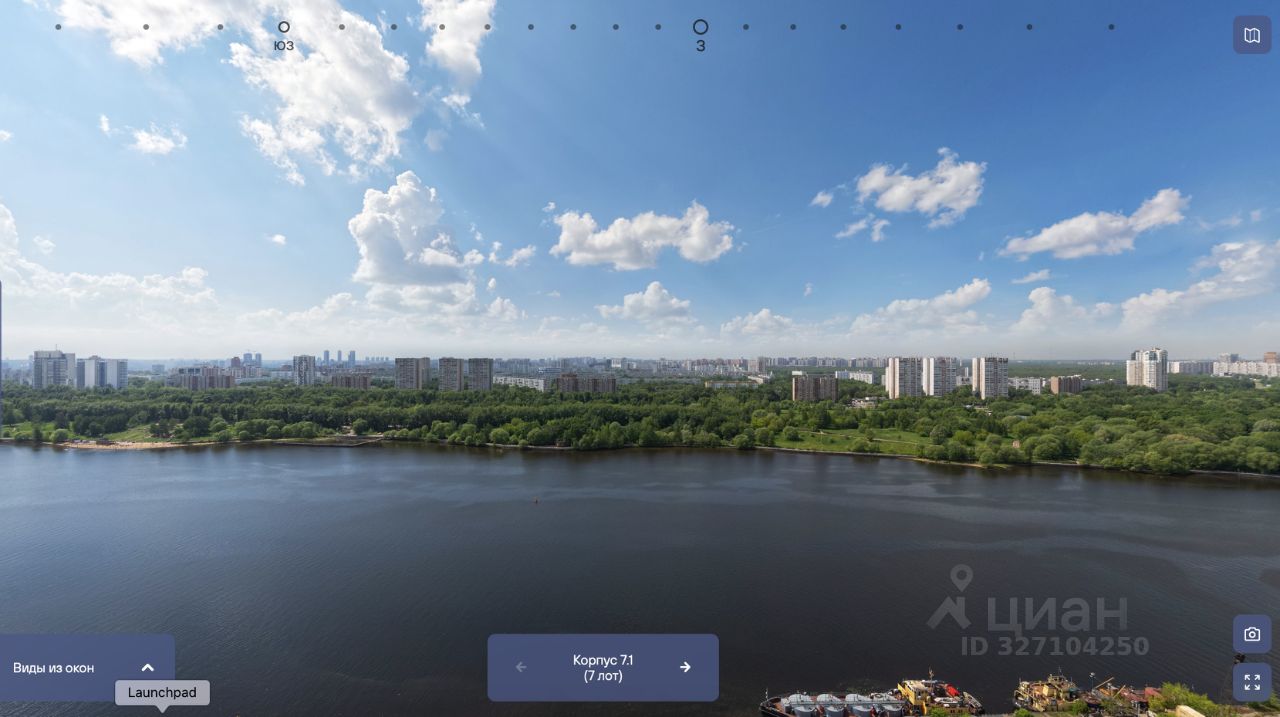 Панорама на акваторию, Северный речной вокзал, Парк Дружбы, Левобережный пляж, зелёный массив Северного Тушина.