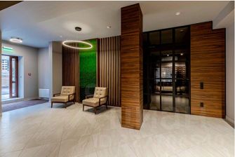 ДИЗАЙНЕРСКОЕ ЛОББИ С ГОСТИННОЙ ЗОНОЙ ТЕЛЕВИЗОРОМ И КАМИНОМ.
