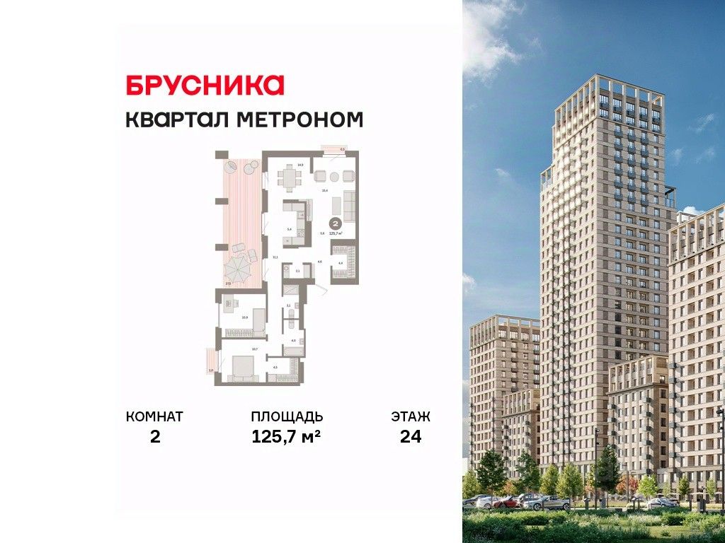 Квартира с кухней-гостиной и двумя спальнями в квартале "Метроном". Особенности планировки: балкон, без отделки, второй санузел, гардеробная, ипотека от 2,98% на 1 год, окна на две стороны, панорамное остекление, постирочная, терраса, терраса на крыше, французский балкон.