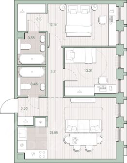 Продаётся 2-комнатная квартира общей площадью 60.75 кв.м. с отделкой white box. Квартира расположена на 16 этаже корпуса 4.1 в жилом комплексе бизнес-класса "Среда на Кутузовском" в пешей доступности от метро "Кунцевская".